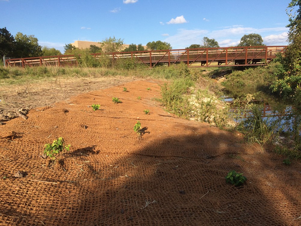 ERI is in our third year working on main campus at the Gardens and Greenways project. The huge main campus has a stream (White Creek) running through it for miles. We are in the process of restoring the stream in two sections. At the headwaters, the stream runs through the large Gardens and Greenways project. Our job includes design/build aspects of taming this flashy urban creek. Due to the significant ongoing expansions on campus, increased urban runoff has taken it?s toll on the creek. In addition, the construction (ongoing) of a 30 million dollar Teaching Garden Project of which the stream dissects, has made it even more important to tame the creek as well as adding an aesthetic and proposed teaching component. The challenge was to make it functional, aesthetically pleasing and to blend the stream aspects into the massive gardens project. To do this we installed 6 rock grade control structures in the main stream and three in one of the two tributaries. In the other tributary, we installed a natural rock-lined channel to capture runoff from a detention pond and merge it into the main stream. In addition, bendway weirs were installed at a large bend in the stream and the banks were restored and planted. At the gardens, we also installed a decomposed granite pathway for the students and two large pedestrian bridges and added rock swales and outlet pipe treatments to capture and convey water to the stream.